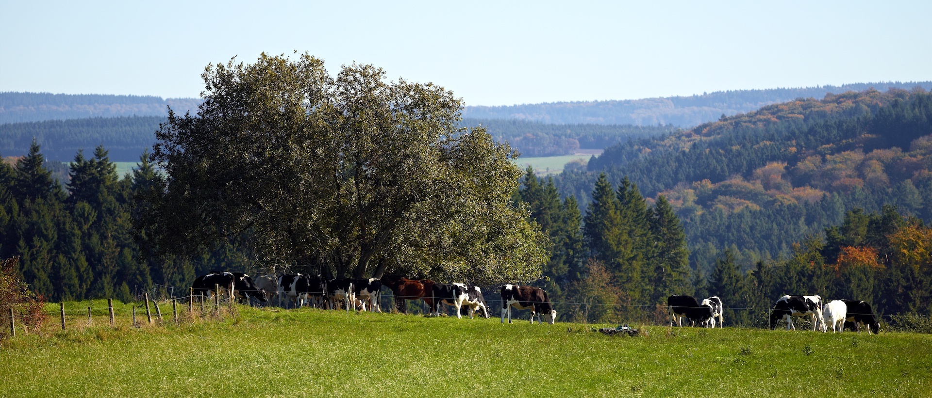 Abwechlslungsreich: erst langgestreckte Felder, dann dichter Wald.
