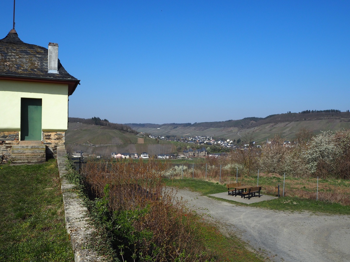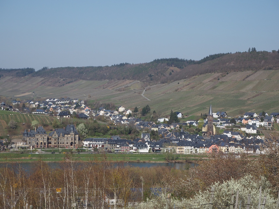 Ein möglicher Startpunkt ist der Ort Mülheim. Inmitten von Weinbergen gelegen ist der Ort besonders berühmt für sein Wein. Denn der Wein aus der Lge "Sonnenlay" war auf den Atlantikflügen des Zeppelin der beliebsten Wein und galt daher als "König der Lüfte" unter den Weinen.