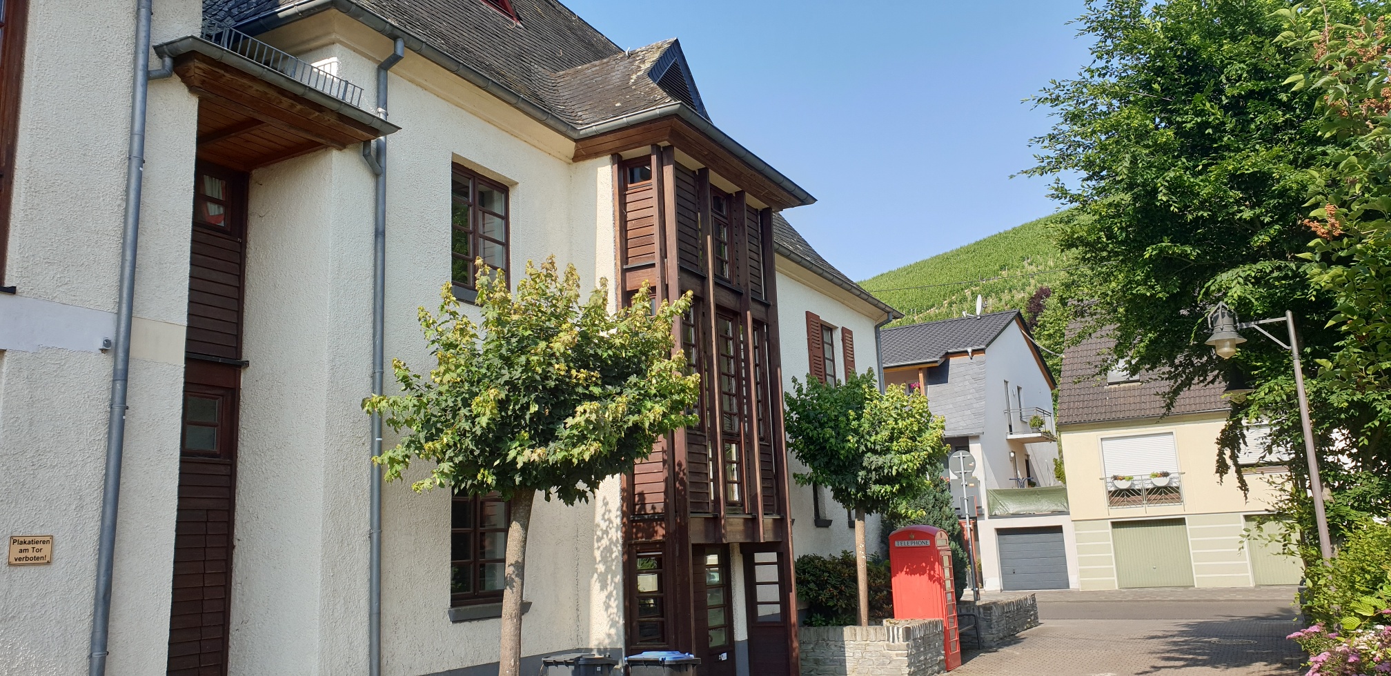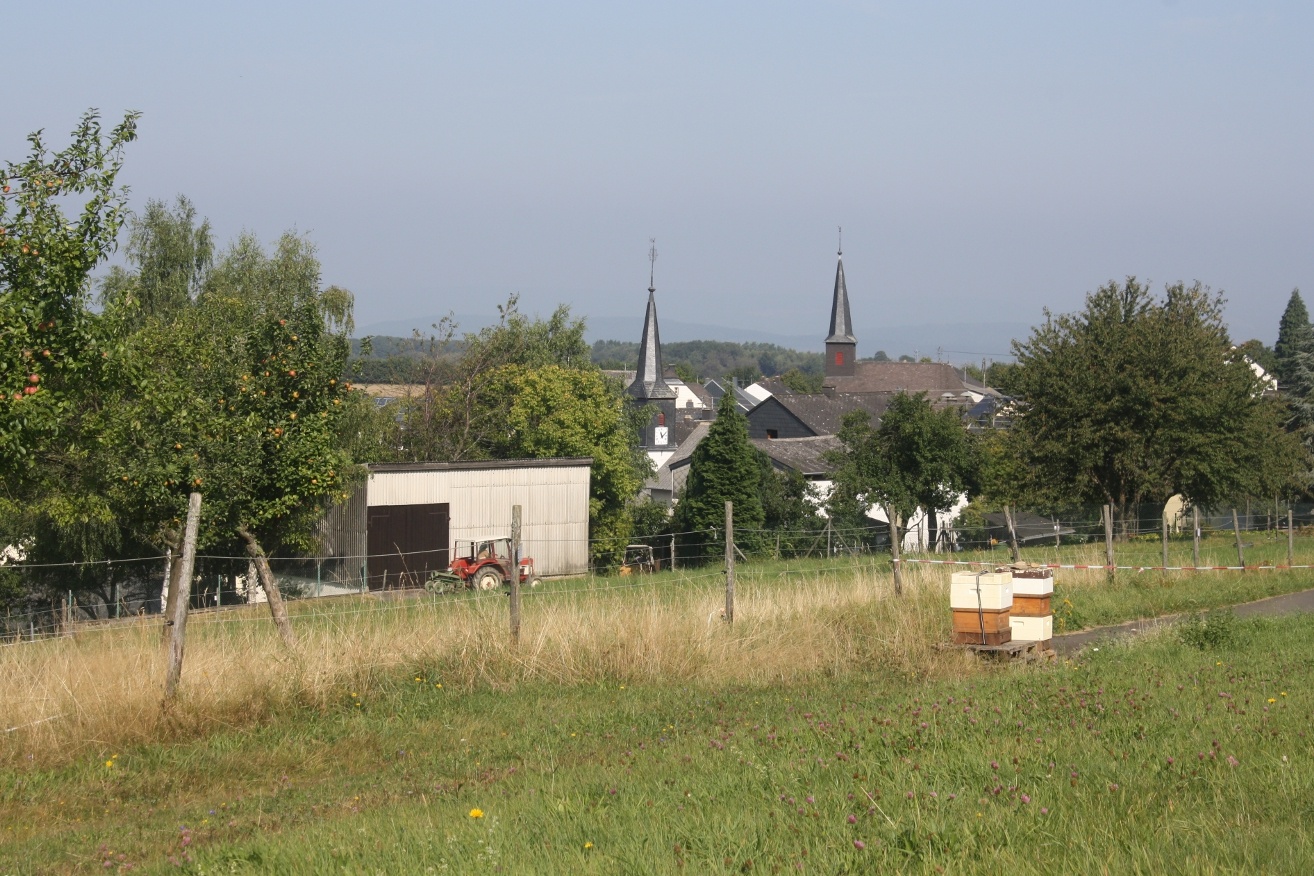 Sie verlassen Veldenz auf einem Feldweg oberhalb der Kreisstraße K 89 und folgen diesem Feld- und Wiesenweg unterhalb des Waldes nach Burgen. Sie durchqueren Burgen im radeln stetig am Frohnbach entlang und fahren auf einem Feldweg, im Talgrund leicht ansteigend, zum Ortsteil Hirzlei. Durch die Hirzlei hindurch folgen Sie in Fahrtrichtung rechts des Baches dem Forstweg stetig bergauf und erreichen nach wenigen Kilometern die Klaramühle. Eine Einkehr zu einem Radler oder einem Glas Wein und einer fangfrischen Forelle bietet sich an diesem schönen Ort an und ist sehr zu empfehlen. Ab der Klaramühle fahren Sie recht steil bergauf nach Gornhausen. Gornhausen ist ein lebenswertes Dorf zwischen den Tälern der Mosel und den Höhen des Hunsrücks. An dieser Stelle bieten sich zwei Möglichkeiten zur Weiterfahrt: Entweder Sie folgen der sehr schwach befahrenen, asphaltierten Straße oder Sie fahren einen kleinen Umweg über Forstwege und passieren den Aussichtsfelsen Barbelley auf seinem Weg hinauf nach Gornhausen.