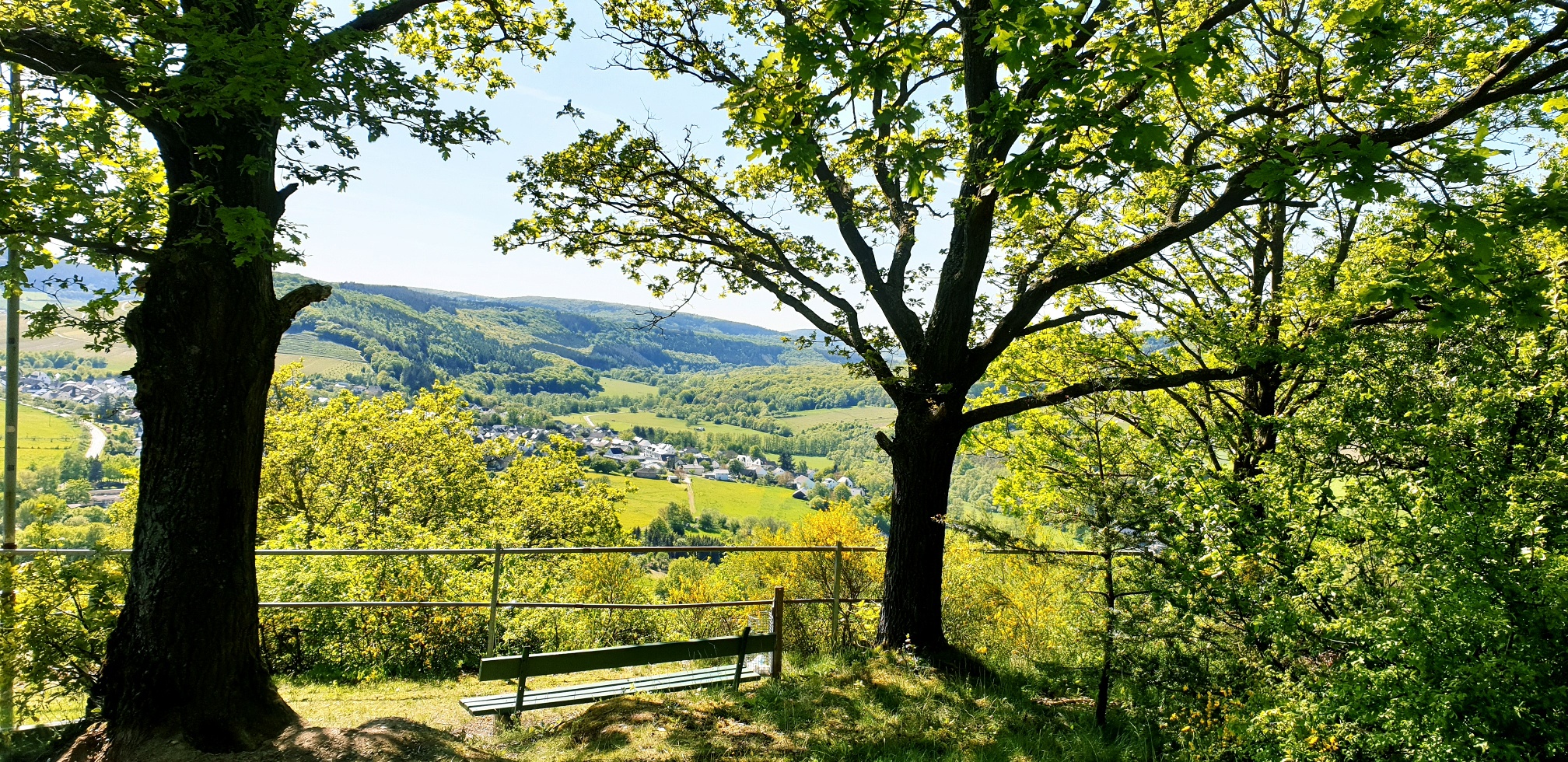 Ausblicke über das Liesertal, die Ortschaft Maring- Noviand sowie weit ins Moseltal hinein, machen die Tour erlebnisreich
