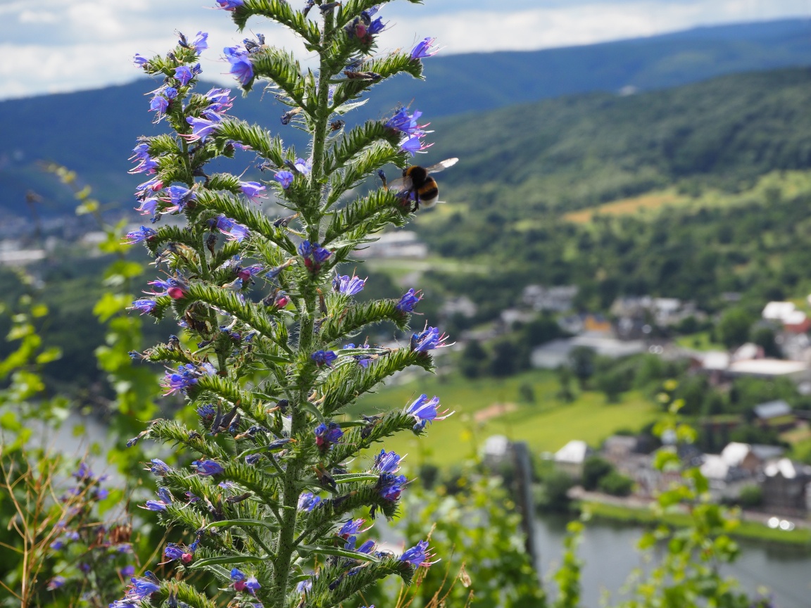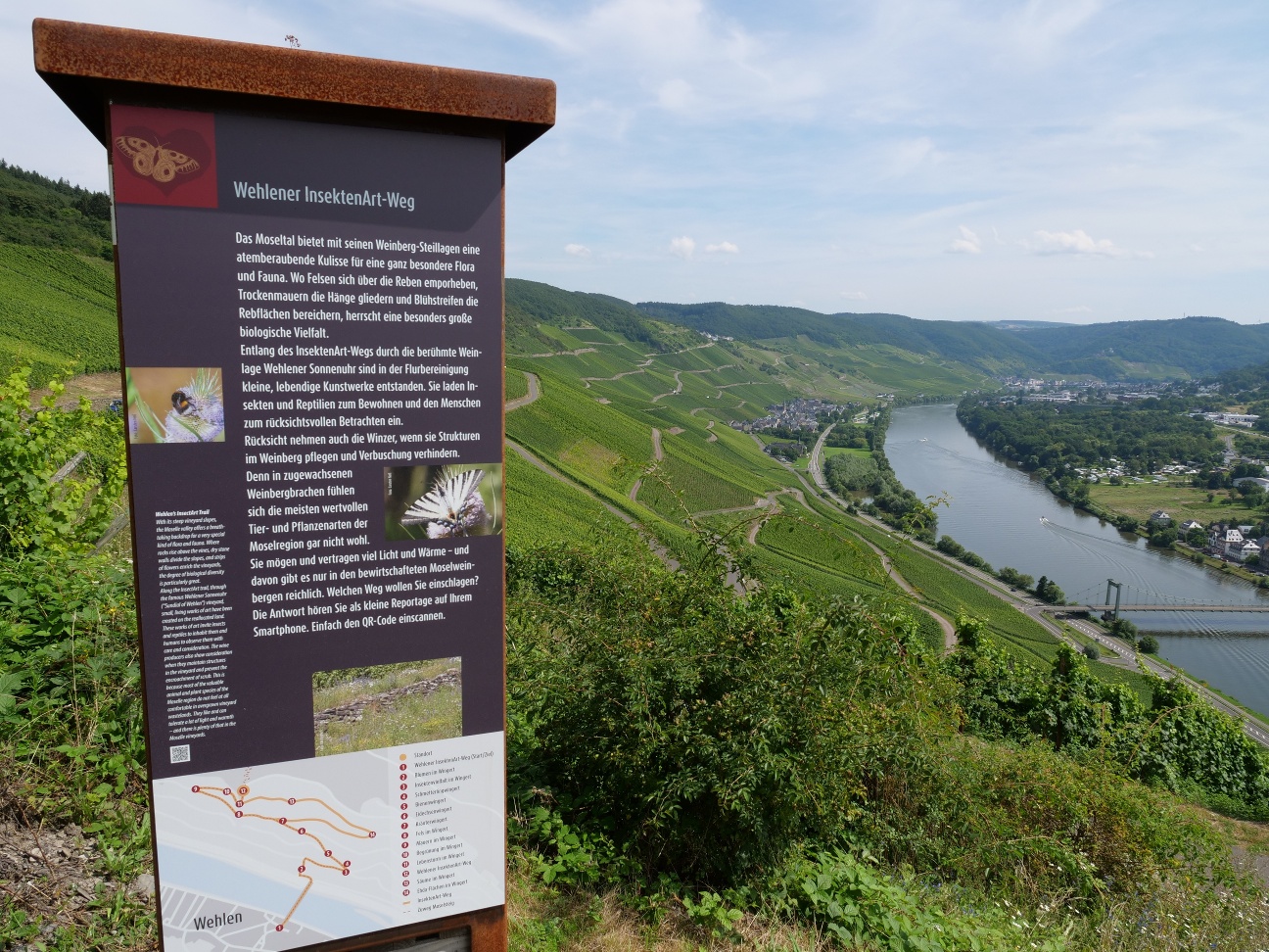 Neben tollen Ausblicken ins Moseltal warten auch viele faszinierende Information rundum die Natur. Auf insgesamt 14 Lebenraum-Stehlen finden sich spannende Infos über die vielfältige Pflanzen- und Tierwelt des Weinbergs. Wer möchte, kann die Infos auch über einen QR-Code als Audiodatei über das Handy abrufen und den Erzählungen lauschen. Entlang des Weges wurden zahlreiche Lebenräume für Insekten geschafften - so finden sich hier Lebenstürme, Insektenhotels und Blumenwiesen. Besonders in den Sommermonaten herrscht ein buntes Treiben im Weinberg und es gibt so einige Tiere zu entdecken.