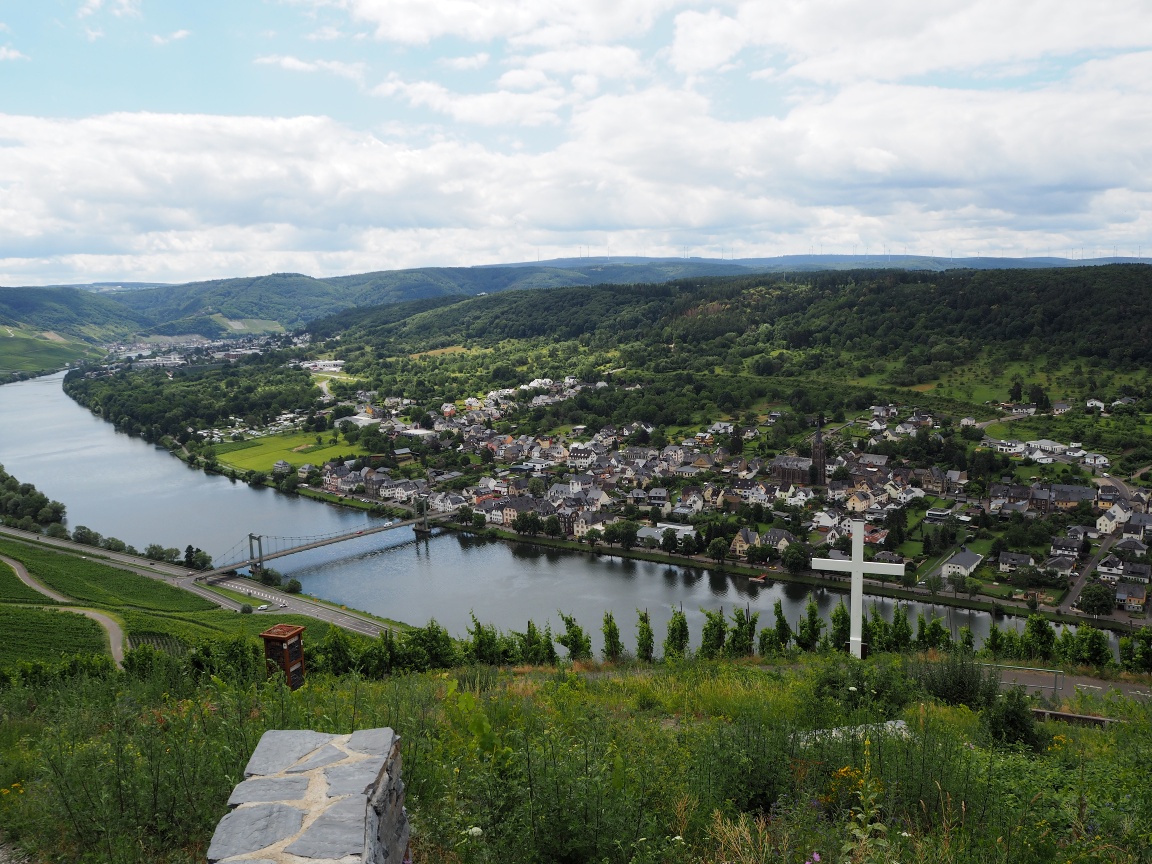 Die Wanderung startet in der Nähe der alten Kirche von Wehlen und führt Sie dann über die Hängebrücke auf die andere Moselseite. Die Hängebrücke ist die einzige ihrer Art an der Mosel und wurde im Jahr 1949 eingeweiht. Nachdem Sie auf der anderen Moselseite angekommen sind, gehen Sie über einen kleinen Pfad bergauf in den Weinberg. Für die restliche Strecke wandern Sie nun inmitten der Weinberg vorbei an zahlreichen Insektenhotels, Lebenstürmen, Infotafeln und Blumenwingerten. Immer wieder warten spannende Informationen über die Tier- und Pflanzenwelt auf Sie. Über die QR-Codes an den Informationsstelen können Sie den Erzählungen lauschen. Oben in den Weinbergen angekommen empfiehlt sich eine Rast an der Wehlener Weinbergshütte. Von hier oben genießen Sie eine tolle Aussicht auf das Moseltal und die umliegenden Weinberge. Von hier aus haben Sie auch den direkten Zugang zum bekannten Moselsteig (Etappe 11) - welcher oberhalb der Weinberge verläuft. Ansonsten können Sie nun wieder dem Rundweg zurück nach Wehlen folgen.