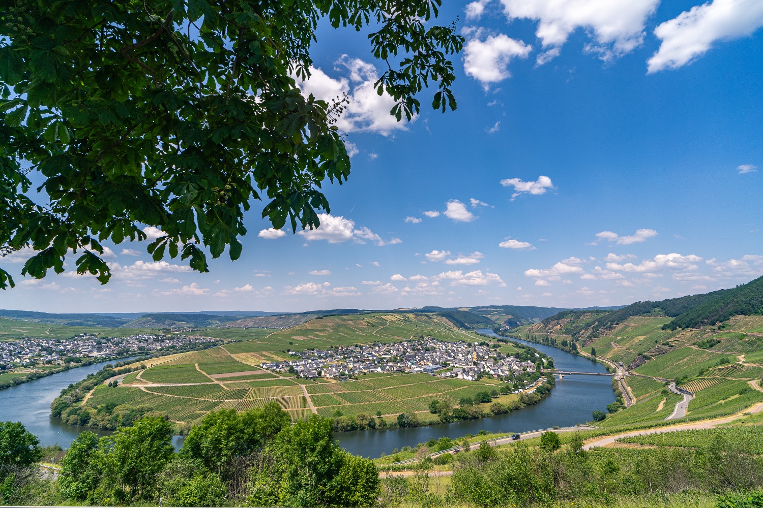 Durch weite Moselschleifen führt der Mosel-Radweg auf seiner vierten Etappe - immer am rechten Moselufer entlang - von Mehring in den Weinort Piesport. Eine der schönsten und bekanntesten Schleifen passiert der Radler zwischen Leiwen und Trittenheim, bevor Neumagen-Dhron, der älteste Weinort Deutschlands und Fundort des Neumagener Weinschiffs erreicht wird. Das Grabmal eines römischen Weinhändlers kann als Duplikat vor der Peterskapelle besichtigt werden, während sein schwimmfähiger Nachbau im eigens gebauten Hafen vor Anker liegt. Kurz vor Piesport zeugt die originalgetreu restaurierte Kelteranlage von der zentralen weinbaulichen Bedeutung des Ortes zur Römerzeit. An der größten jemals gefundenen römischen Kelteranlage nördlich der Alpen lohnt ein kurzer Zwischenstopp, ehe die gastlichen Winzerhöfe zur Einkehr und Verkostung des bekannten "Piesporter Goldtröpfchens" einladen.