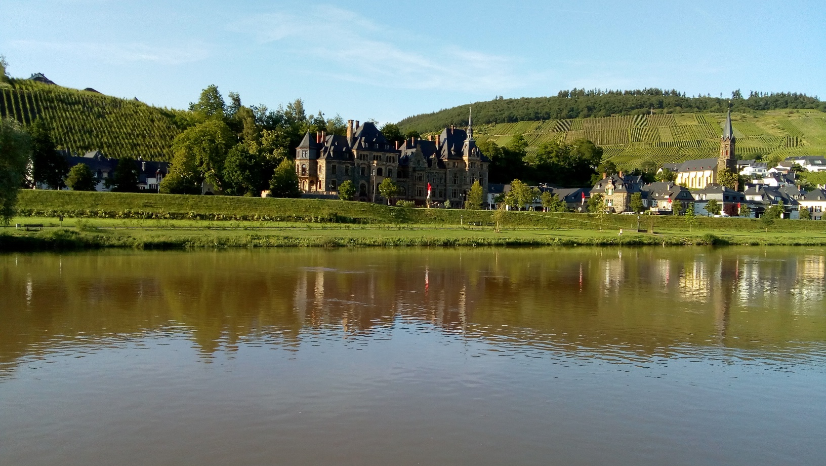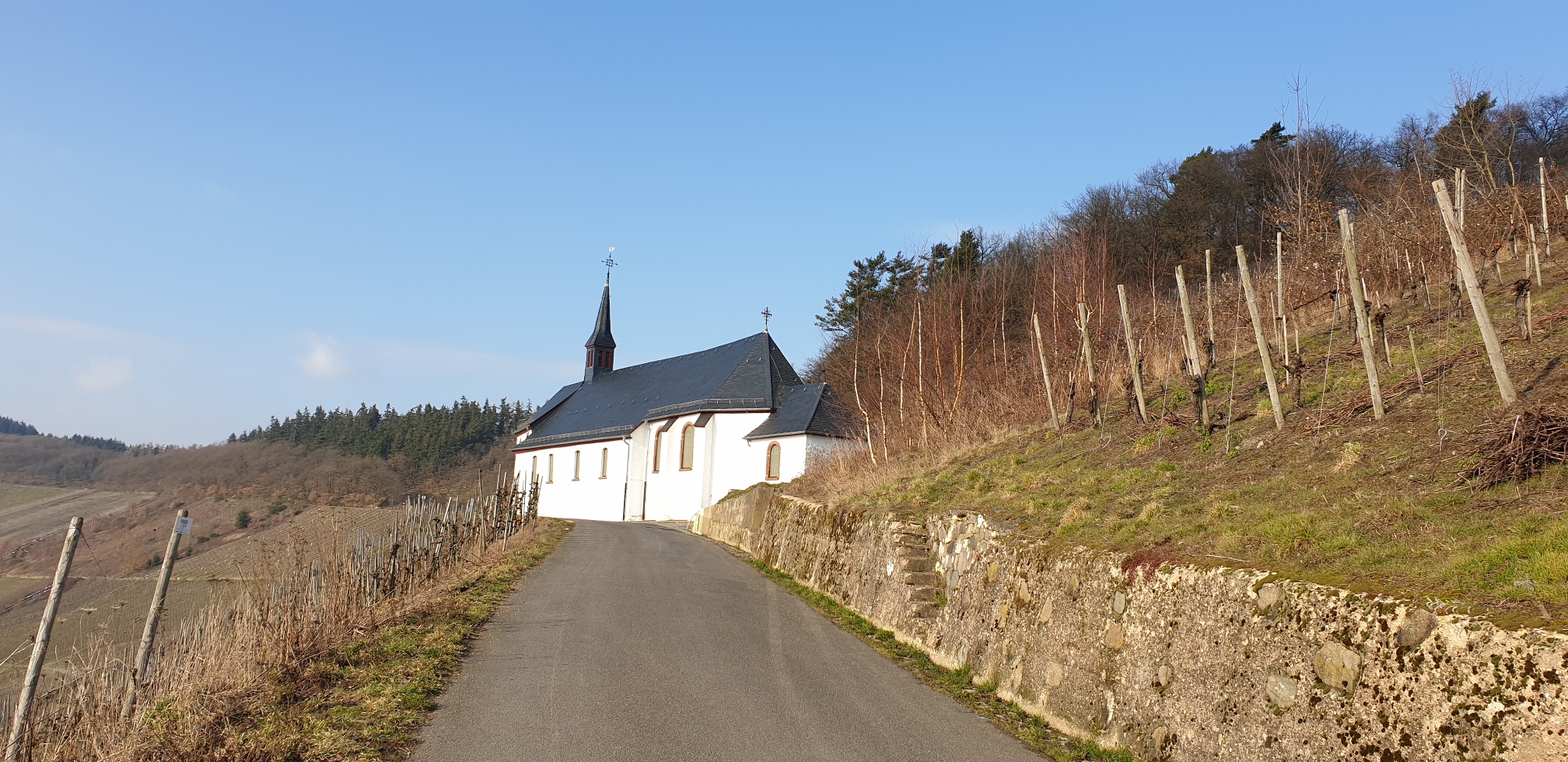 Sie starten vom Busbahnhof im Stadtteil Kues. Auf dem ehemaligen Bahnkörper führt Sie die Tour zum Stadtrand und dann in die Weinberge hinauf. Sofort bieten sich Ihnen herrliche Aussichten ins Moseltal. Ein besonderes Panorama gibt es von der "Heldensicht", die in einer öffentlichen Online-Abstimmung auf der Internetseite des Deutschen Weininstituts (DWI) zur „Schönsten Weinsicht 2020“ der Moselregion gewählt wurde. Ein Abstecher dorthin ist unterwegs ausgeschildert. Nachdem Sie den Ortsrand von Lieser erreicht haben, geht es erneut hinauf - zur Paulskirche. Bis zum 16. Jahrhundert war sie religiöser Mittelpunkt von vierzehn Dörfern und ein vielbesuchtes Wallfahrtsziel. Am 8. Okt. 1848 fand hier mit 15.000 Personen eine der größten Kundgebungen der Rheinprovinz statt. Das Tal zu Füßen der Kirche ist ein Urstromtal der Mosel. Das ehemalige Kloster Siebenborn ist das nächste Zwischenziel. Das Kloster ist heute ein Weingut und die Klostermühle beherbergt einen Gastronomiebetrieb. Zur Rast lädt auch ein Wassertretbecken ein. Nach Querung des "Maare-Mosel-Radwegs" geht es am Sportplatz vorbei in den Ortsteil Noviand der Doppelgemeinde Maring-Noviand, über verschiedene Ortsstraßen ("Bahnhofstraße", "Bernkasteler Straße", "Kreuzberg") fahren Sie dann durch die Felderlandschaft hinauf in Richtung Mosel auf den hohen "Brauneberg" mit der bekannten Weinlage "Brauneberger Juffer". Oben, entlang der Hangkante, radeln Sie an der Brauneberger Schutzhütte vorbei und an verschiedenen Rast- und Aussichtspunkten. Sie erreichen den Ortsteil Monzel der Doppelgemeinde Osann-Monzel, queren dort die "Moselstraße" und treffen kurz danach am Ortsrand auf eine Ruheinsel mit Rastmöglichkeit und Blick auf die Monzeler Kirche St. Nikolaus. Dort wenden Sie sich nach rechts, dann gleich wieder links, passieren ein Weingut und biegen links (zweite Möglichkeit) in ein Wingertsweg ein, der durch die Weinberge oberhalb des Weindorfes Kesten führt. Dann rollen Sie abwärts in ein Seitental zum Kestener Freizeitgelände "Sauerbrunnen". Hier lädt neben dem Brunnen, an dem schon die Römer ihren Durst gelöscht haben sollen, ein Wassertretbecken zur Erfrischung ein. Das kohlensäurehaltige Sauerbrunnen-Wasser kommt aus etwa 15-20 Meter Tiefe. Durch den hohen Eisengehalt ist die Fassung rostbraun gefärbt. Über die Zufahrt zum Freizeitgelände rollen Sie noch einige Meter abwärts Richtung Mosel, biegen dann aber an der ersten Spitzkehre rechts ab und dann wieder links hinauf durch ein Waldstück in die Weinberge. Es geht stetig bergauf bis zur K52, der beliebten "Panoramastraße" oberhalb der Moselweinorte Piesport und Minheim. Nur ein kurzes Stück radeln Sie auf der Kreisstraße, folgen dann aber gleich bergab den serpentinenartig angelegten Wirtschaftswegen hinunter ins Moseltal nach Piesport. Wer mag, besichtigt in der Rokoko-Kirche St. Michael herrliche Deckenmalereien, den sogenannten "Piesporter Himmel". Lohnenswert ist auch ein Abstecher zur original getreu restaurierten Römischen Kelteranlage am "Ausoniusufer". Ein Multifunktionsgerät stellt dort in einem Video eine Traubenkelterung nach römischem Vorbild nach.