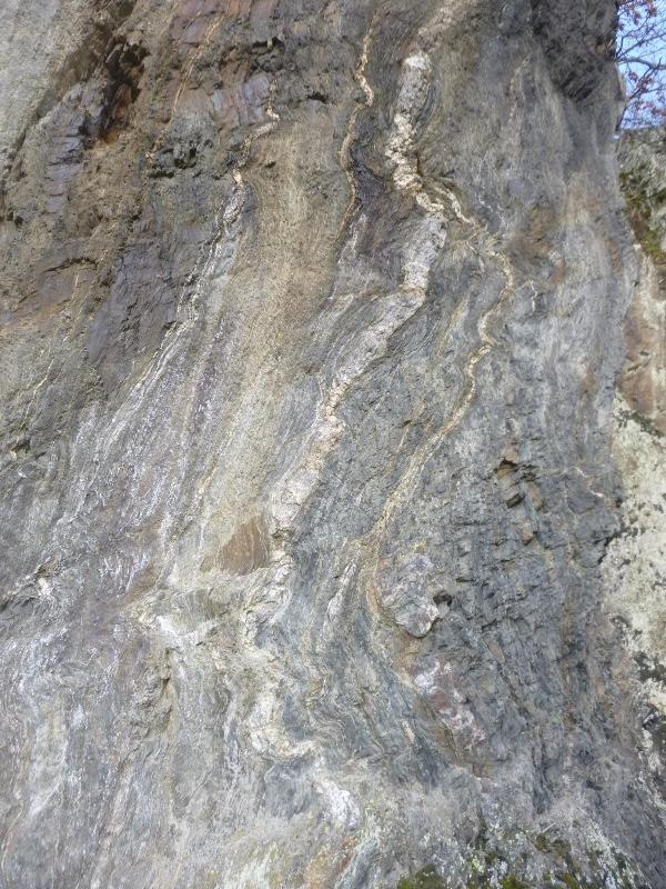 Über einen Waldweg führt der Seitensprung jetzt ins Ilsbachtal. Das letzte Stück zum Bach hin ist richtig steil. Schon hier wird der Weg immer wieder von großen Quarzitblöcken gesäumt. Der Weg begleitet den Bach, der hier über kleine Felsstufen sprudelnd in Richtung Mosel fließt. Auf der anderen Seite des Weges baut sich der Bildstein-Felsen auf. Ein wildromantischer Platz.
