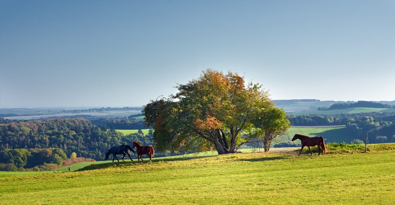 Auf einem höhengleichen Wiesenweg geht es aus dem Ort. Von diesem Weg hast du einen Blick auf den Kirchturm der Kleinicher Kirche und über das Tal hinweg auf Fronhofen, das der Seitensprung im weiteren Verlauf noch erreicht. Vom Fahrweg biegt ein Pfad ab, der den Bergrücken steil hinauf führt. Durch den Birkenwald erreichst du die Kuppe des Kordelberges, auf dem auch eine Grillhütte und Rastmöglichkeiten zu finden sind. Steil geht es dann hinunter nach Pilmeroth, an dessen Ortsrand eine imposante alte Eiche steht. An der Viehwaage und dem Brunnen vorbei gelangt der Weg schnell wieder in die umliegenden Wiesen und Felder. Von hier hast du einen weiten Blick in Richtung Mosel und die tief eingeschnittenen Täler von Kautenbach, Trabener Bach und Ilsbach.