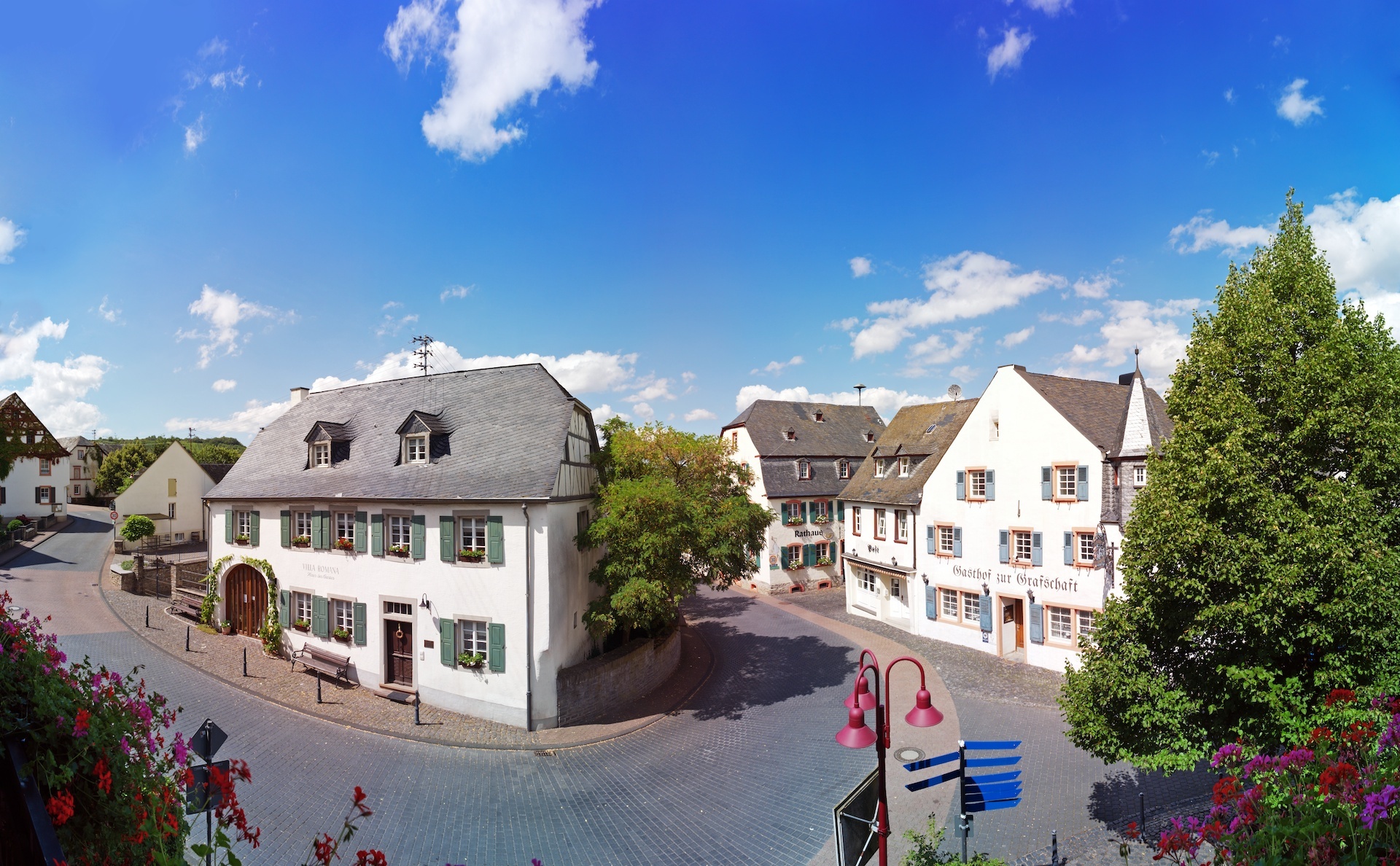 Sie starten z. B. an der Villa Romana in Veldenz und wandern über den Wohnplatz Veldenzer Hammer zum Ortsteil Thalveldenz, über dem das Schloss Veldenz thront. Es geht bergauf über die Schlossstraße, vorbei an der Waldkapelle und ein kurzes Stück entlang des Kalmbaches, dann, über einen Serpentinen-Waldweg hinauf zur Gornhausener Höhe. Auf der Flur in rund 450 Meter Höhe weht meist ein erfrischendes Lüftchen. Zu bestaunen gibt es tolle Weitsichten in Richtung Moseltal und Eifel sowie auf die Hunsrückhöhen. Durch Gornhausen führt Sie die Wanderstrecke zum Aussichtsfelsen Barbelley und anschließend entlang des Herrenbaches hinunter zur Siedlung Klaramühle. Der Barbelleyfels besteht aus hartem Taunusquarzit, der dem Zahn der Zeit und der Erosion mehr Widerstand leistete als der weiche Hunsrückschiefer, der den Fels zu Urzeiten wohl "eingeschlossen" hat. Um die Barbelley rankt sich auch eine Sage. Sie handelt von einem räuberischen Ritter und seiner frommen Tochter Barbara.