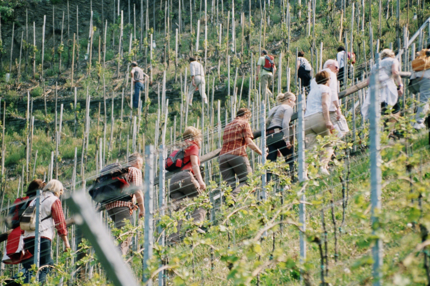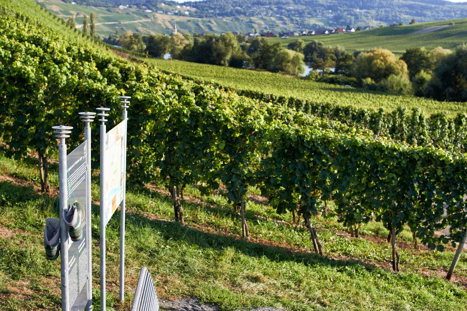 Hinkelsteine, Schieferhöhlen, Felsenkanzeln, Römischer Weinbau ... Der Römersteig zwischen Trittenheim und Minheim bietet einen hervorragenden Mix aus Natur und Antike. Repliken von Grabdenkmälern oder eine Kelter in der Weinlage "Piesporter Goldtröpfchen" erzählen dem Wanderer von der Antike. Schautafeln laden immer wieder zu kleinen informativen Pausen ein. Die Panoramablicke vom "Römersteig" hinunter ins Moseltal sind spektakulär, nebenbei erkunden die bewegungshunrigen Weinkenner einige der besten Lagen der Mittelmosel.