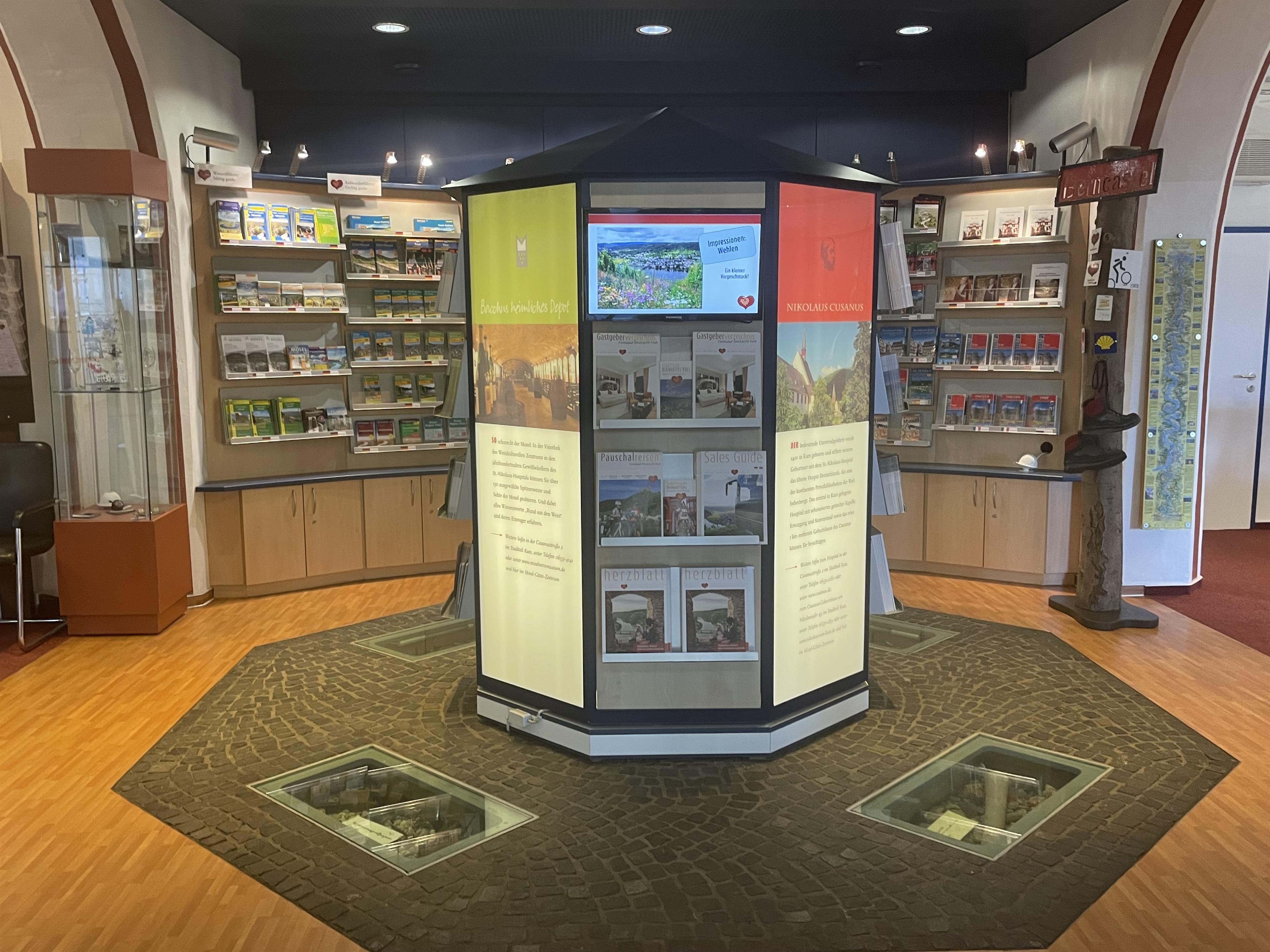 Die Mitarbeiter der Touristinformation sind Ihnen bei allen Fragen rund um Ihren Urlaub behilflich. Neben Tipps und Informationen zu Freizeitaktivitäten, Ausflügen und Veranstaltungen, unterstützen sie Sie auch bei der Suche nach der passenden Unterkunft. Neben persönlicher Beratung erhalten Sie im Mosel-Gäste-Zentrum auch Infomaterial und Prospekte zu Wander - und Radwegen, Freizeiteinrichtungen, Museen und vielem mehr.
