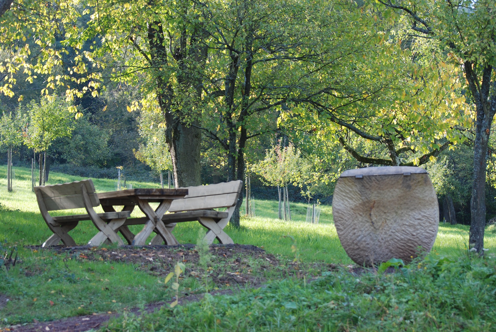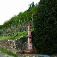Weiter gehen Sie zur Dreifaltigkeit. Viele Wege zweigen dort ab und eine Hütte lädt zur Rast ein. Dort steht auch ein altes Wegekreuz aus rotem Sandstein, welches eine ganz besondere Form aufweist: auf einem breiten, dreikantigen Sockel steht eine ebenfalls dreiseitige Säule mit fast spitz auslaufender Krone. Drei göttliche Personen zieren die Säulen. Dieses Dreifaltigkeitskreuz gibt dem Standort seinen Namen "Auf Dreifaltigkeit".