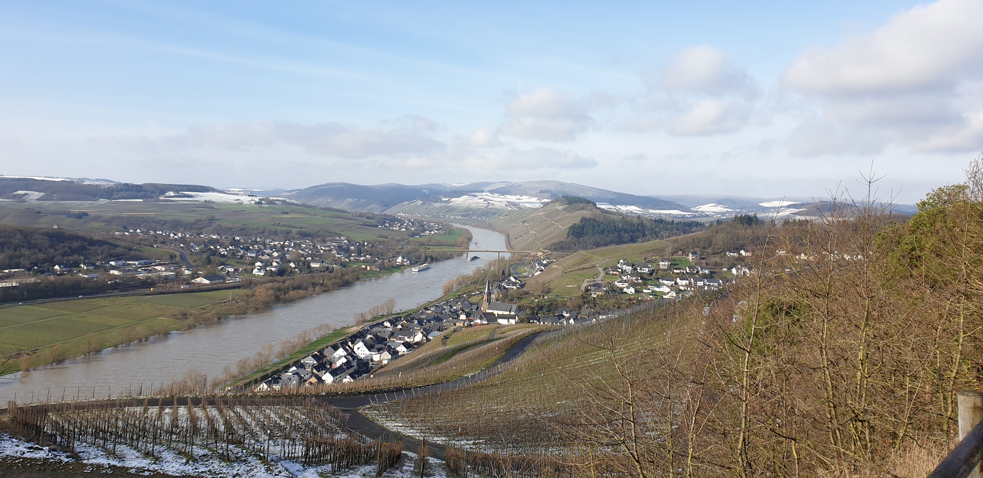 An der Schutzhütte vorbei führt Sie der Weg lange Zeit fast geradeaus auf dem Moselrücken weiter. Dann biegen Sie links ab und steigen zum Weinort Wehlen mit seinen Streuobstwiesen hinab. Über den „Wehlener ObstArtWeg“ und entlang der verschiedenen Erlebnis-Stationen wandern Sie durch das Wehlener Naturschutzgebiet. Über eine Serpentinenstraße folgt der steile Anstieg auf das Kueser Plateau. Dieser heilklimatische Kurort der Stadt Bernkastel-Kues ist vor allem durch seine vier MEDIAN-Kliniken sowie das Cusanus-Hofgut bekannt.