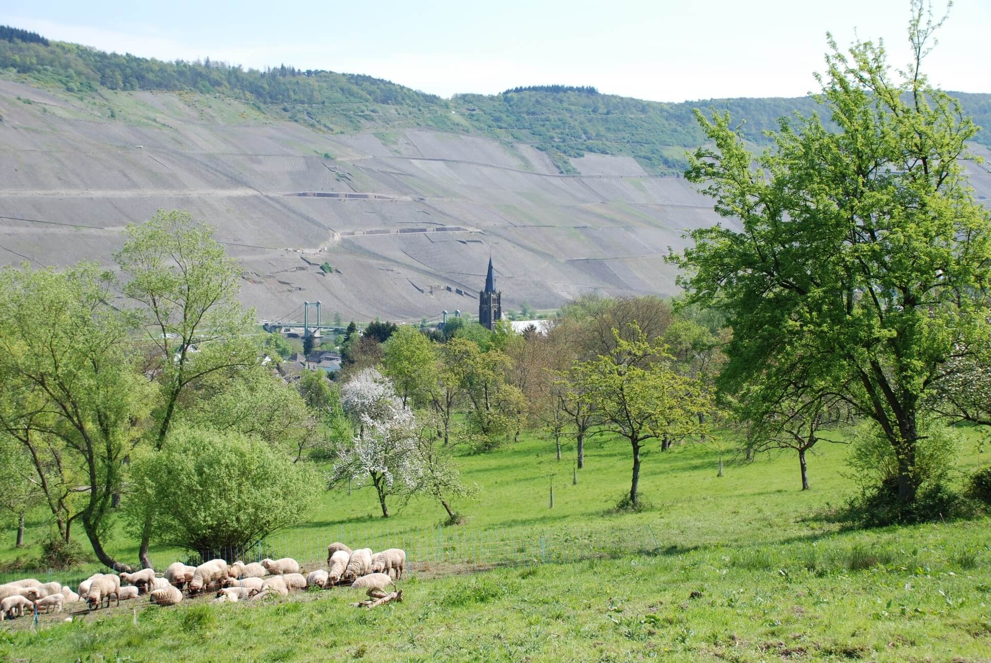 Am Marktplatz in Lieser starten Sie die Wanderung „Vom Urstrom zum Strom“ (alternativ: Bernkastel-Wehlen, Parkplatz Am Krausbach), die sich auf rund 17 Kilometern durch Weinberge, Waldlandschaften und Streuobstwiesen schlängelt.