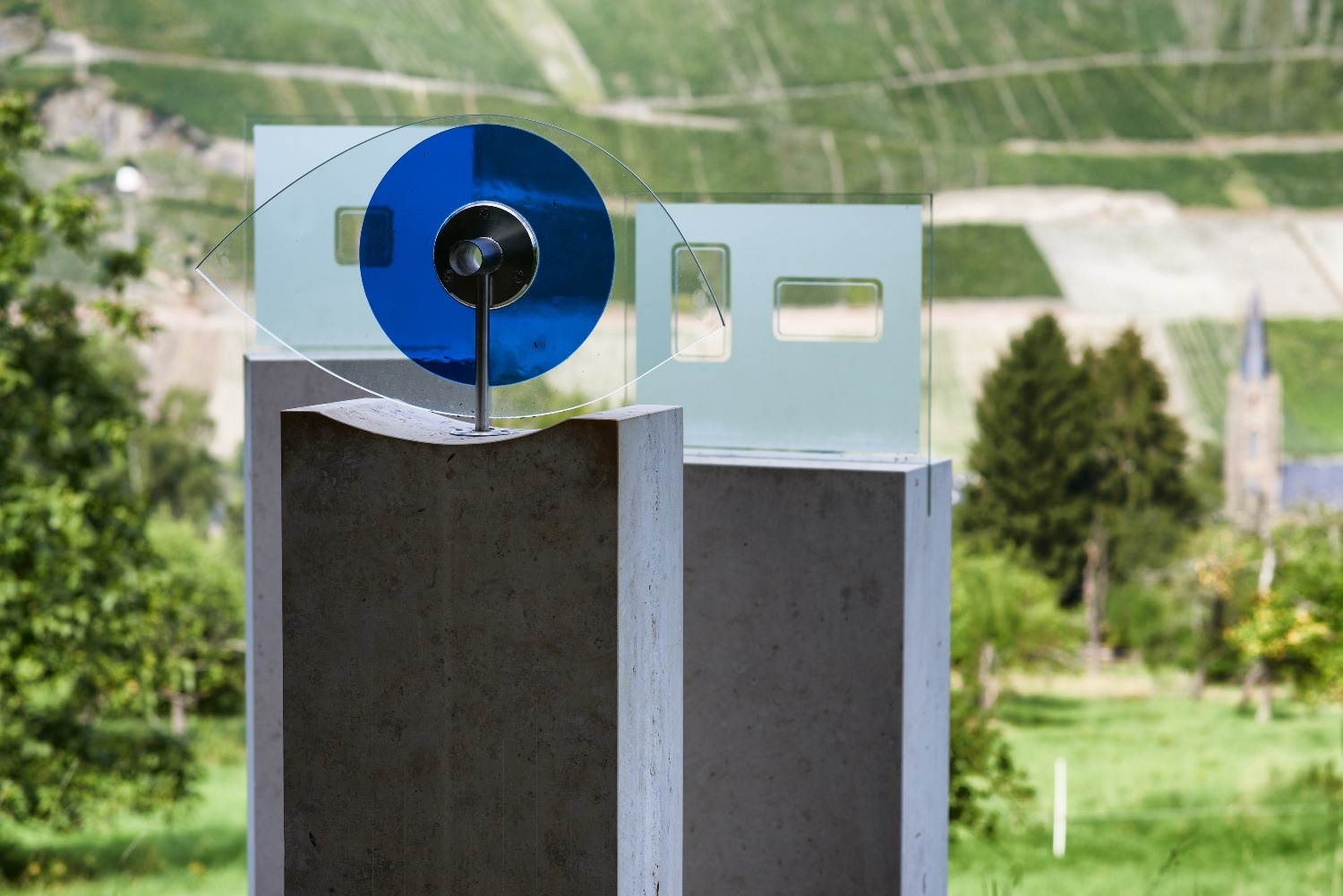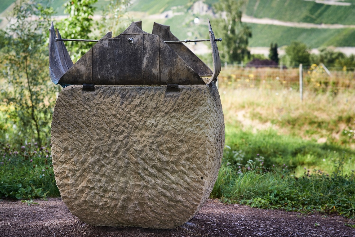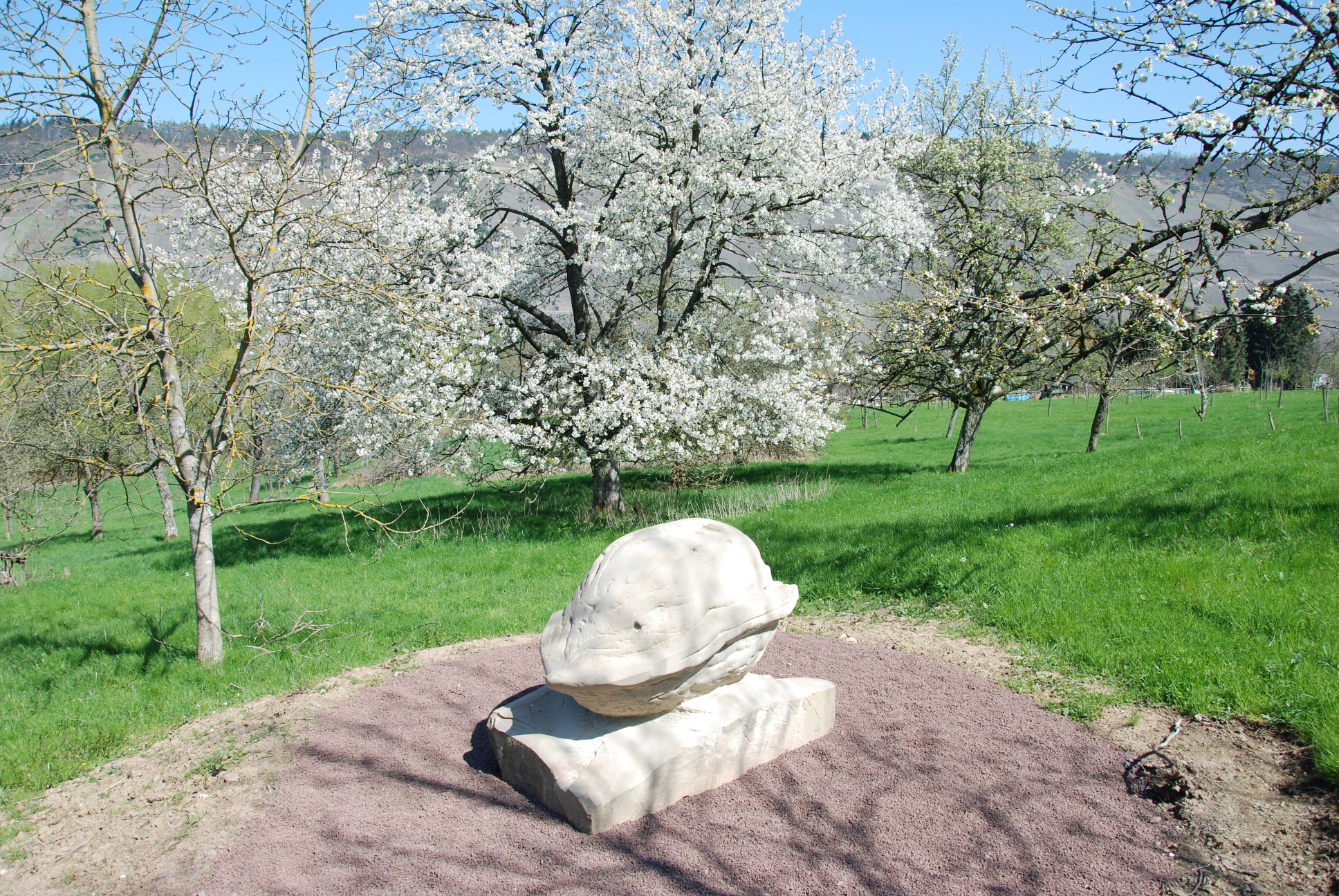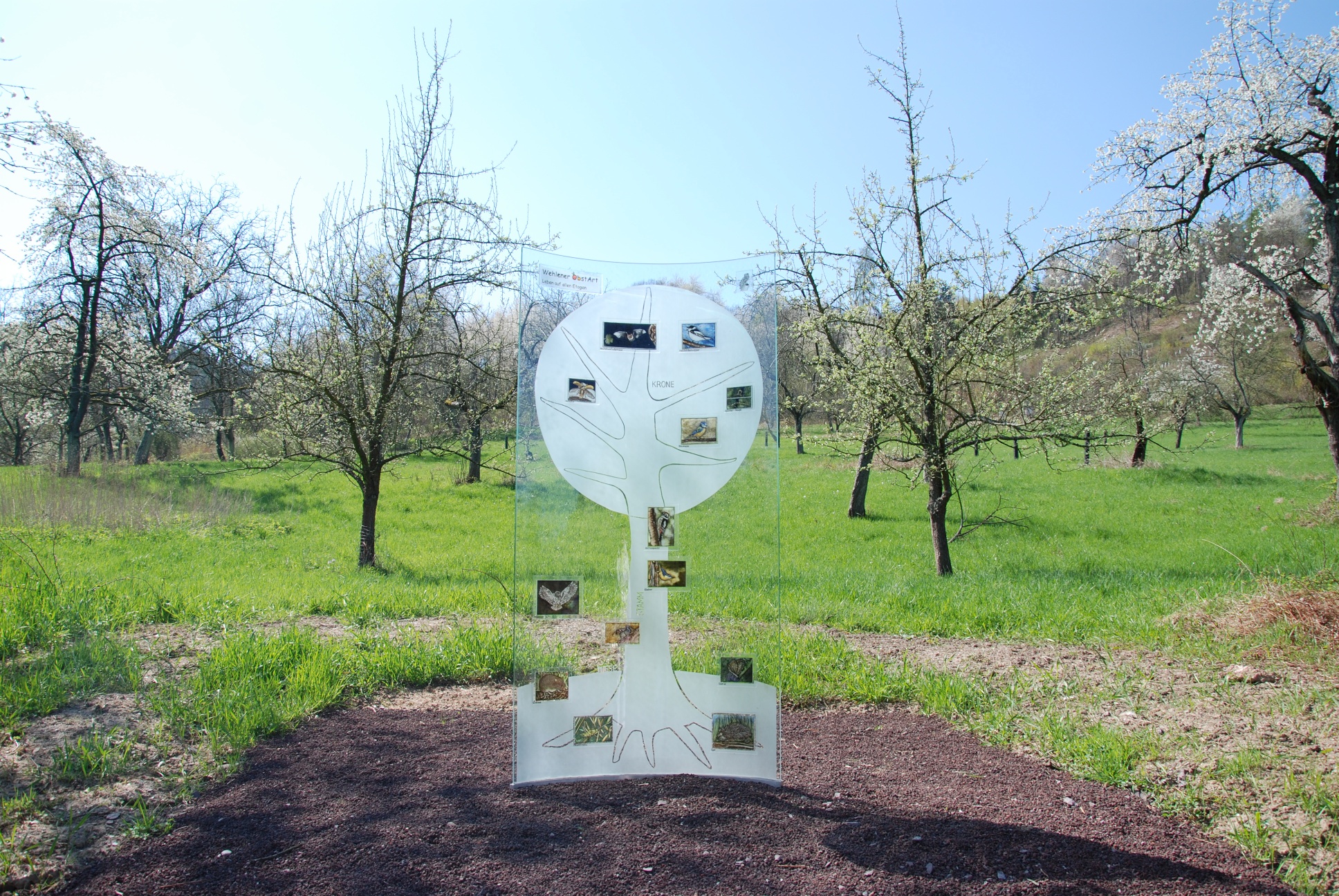 Entlang der Strecke informieren Steinskulpturen und Glaskunstwege der Künstler Heidemarie und Mic Leder über die Flora und Faunader Streuobstwiese.