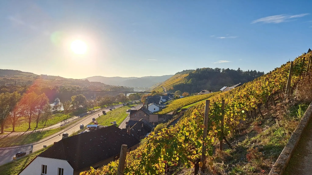 Die Familienwanderung startet am Lieserer Dammtor mit einer Starttafel auf der Dorfseite. Wichtige Infos und die Wanderkarte sind auf der Tafel erneut abgebildet. Für Familien mit Kindern sind im Flyerhalter Quizkarten zur spielerischen Wissensvermittlung angebracht, falls keine vorhanden sind gibt es Reserven in der Touristeninformation. Kleine Wegweiser mit dem Maskottchen „Turlie“ dem Turmfalken weisen Ihnen den Weg. Der weitere Weg führt über den Hochwasserschutzdamm am Schloss Lieser vorbei, hier muss die Hauptstraße überquert werden und an der Kreuzung Richtung Maring-Noviand führt der Rundweg Sie in die Lieserer Weinbergslage Rosenlay. Entlang einer hohen Trockenmauer, dem Blick rechts auf die Weinberge und links auf die Mosel geht es bergauf in die Weinberge. Nachdem Sie einige Meter den Berg aufgestiegen sind und sich mit den verschiedensten Tafeln beschäftigt haben, folgt eine erste Pausenstation mit einer Bank und einer „weinbergsvielfältigen“ Selfie-Wand. Gestärkt geht es dann geradeaus wieder Richtung Dorf Lieser an einem Schieferfelsen vorbei, welcher ebenfalls ein wichtiger Lebensraum in der Weinkulturlandschaft darstellt, dieser Weg ist leicht geschottert. Am Dorfrand angekommen wartet ein Esskastanienbaum mit Sitzgelegenheit sowie eine weitere Informationstafel. Wieder bergauf geht es rechtshändig an den Häusern und linkshändig an den Weinbergen bis hoch an den Waldrand. Unterwegs gibt es weiteres Wissen. Nachdem die kleine Waldpassage passiert ist, führt der Weg wieder komplett durch die Weinberge. Der höchste Punkt ist erreicht. Jetzt folgen auf dem Weg nach unten weitere Tafeln, begrünte Wegspitzen, weitere Sitzgelegenheiten, um den atemberaubenden Ausblick auf die Mosellandschaft genießen zu können. An der letzten Tafel, Nr. 14, erhalten die Kinder, die am Quiz teilgenommen haben, ihre Auflösung und eine kleine Überraschung. Der Weg führt jetzt wieder bergab, an der Pausenstation mit der Selfie-Wand und an der Trockenmauer vorbei. An der Hauptstraße geht es wieder Richtung Schloss Lieser, die Hauptstraße wird überquert und der Rückweg kann über den Hochwasserschutzdamm zu Ende geführt werden.