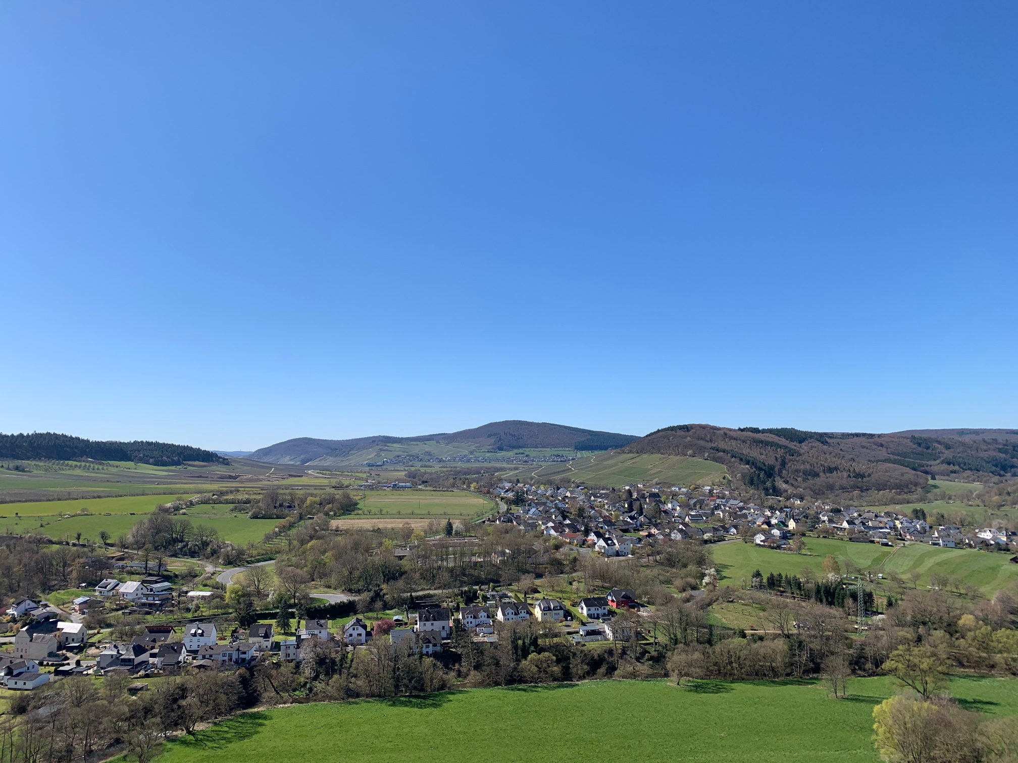 Vom Parkplatz am Kloster Siebenborn startet der Weg Zwei-Täler-Blick etwas ansteigend die Fahrstraße hinauf. Entlang von Feldern und Weiden führt er Sie an einem Bauernhof vorbei. Dicht hinter dem Bauernhof gehen Sie nach links. Der Weg windet sich weiter bergan. Sie gehen weiter den Honigberg hinauf. Dann biegen Sie nach rechts in die Weinberge hinein. Ein einzigartiges Panorama begleitet Sie durch die Weinlagen. Wenn Sie den Blick nach oben wenden, können Sie Zeit und Sonnenstand auf der Maringer Sonnenuhr ablesen.