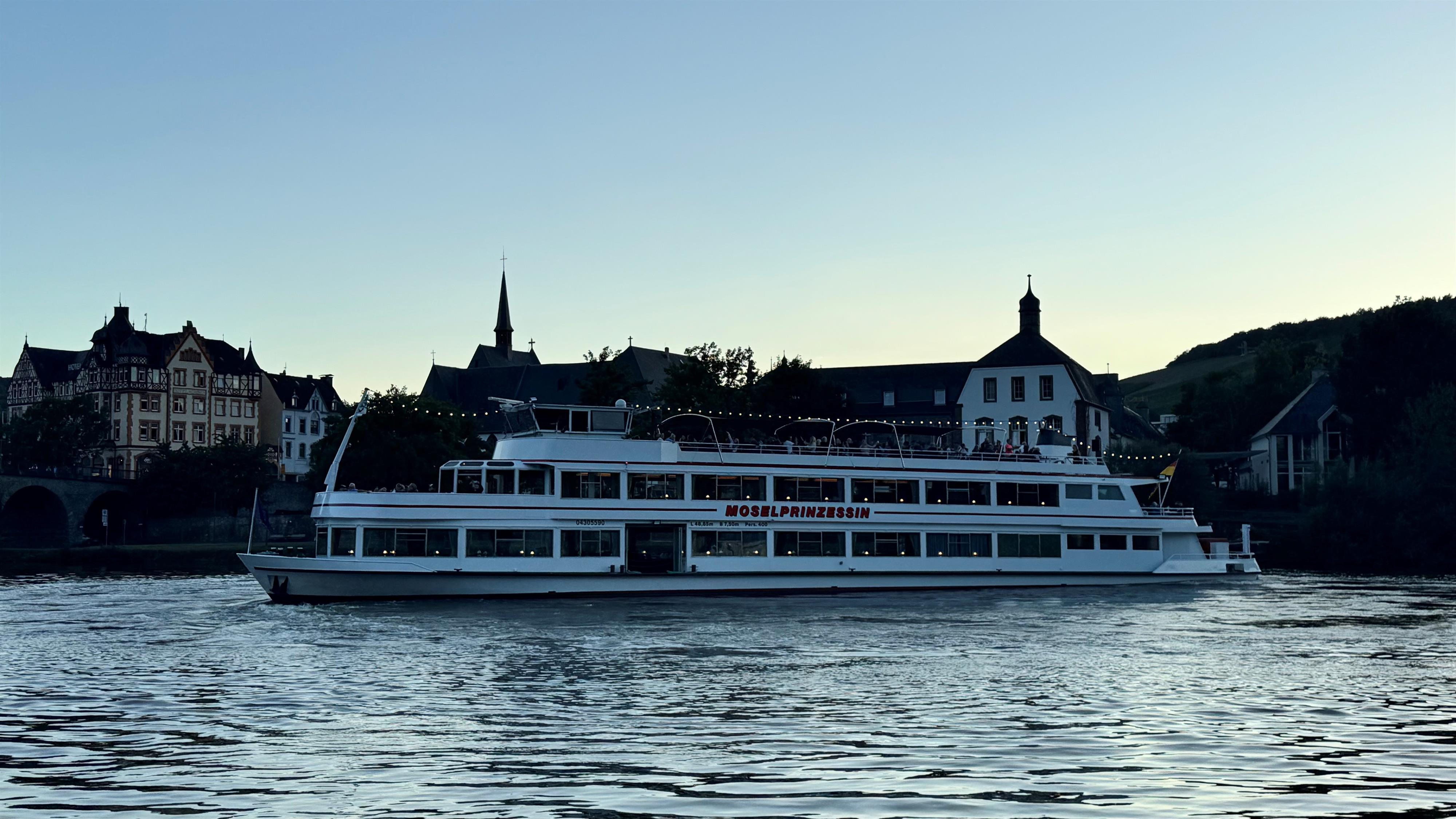 Gleiten Sie entspannt über die Mosel und erleben Sie dabei eine Panoramaschifffahrt der besonderen Art. Während die malerische Flusslandschaft an Ihnen vorbeizieht, sorgt ein DJ an Bord für die passenden Beats und ausgelassene Stimmung. Genießen Sie kühle Drinks, gute Musik und das einzigartige Zusammenspiel aus Partyfeeling und Moselpanorama.