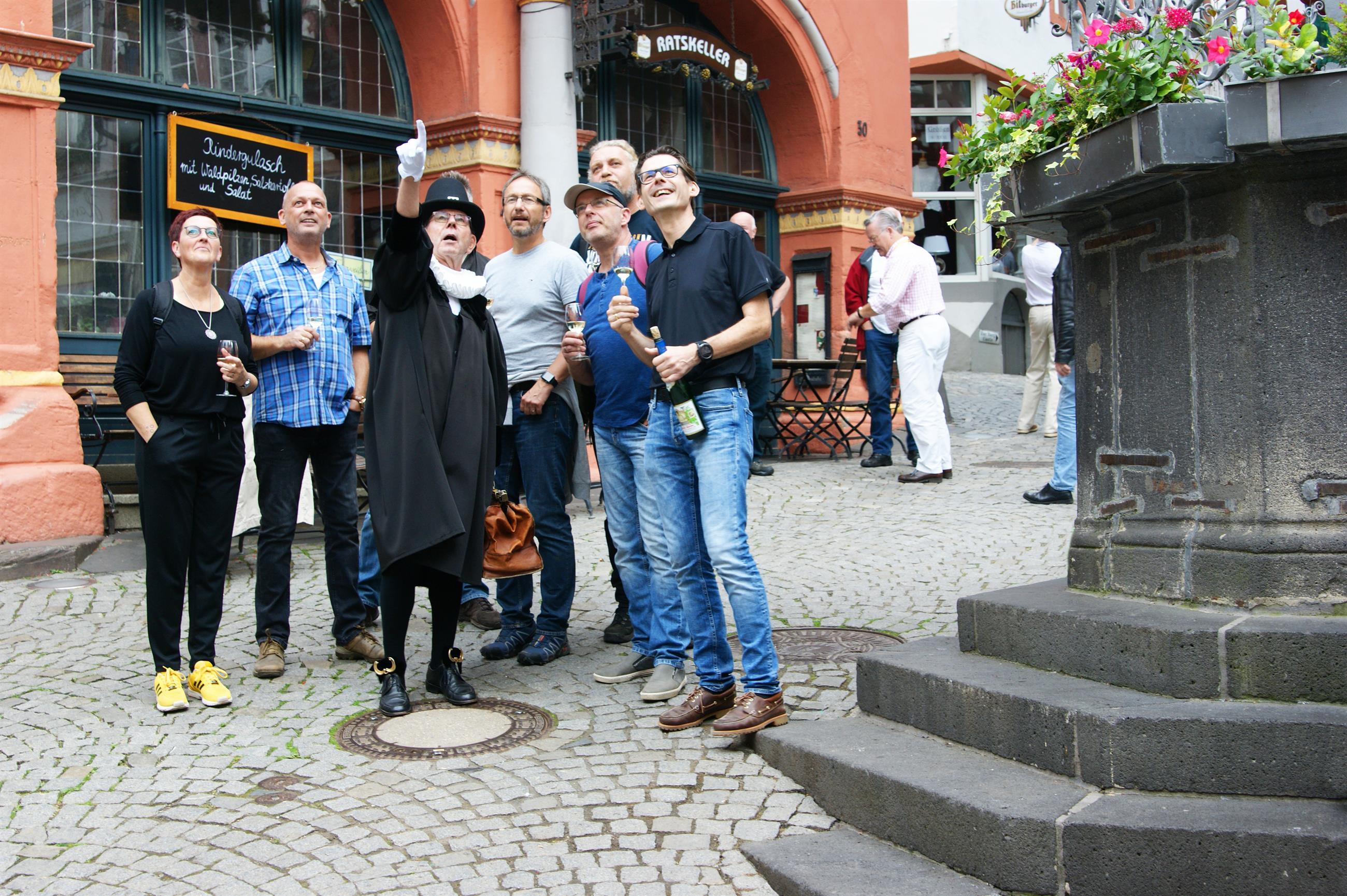 So kam der "Bernkasteler Doctor" zu seinem Namen. Soweit, in Kurzfassung, die Legende um den „Bernkasteler Doctor". Diese Legende war uns Ansporn, eine Führung der besonderen Art zu kreieren: die „Stadtführung mit dem Bernkasteler Doctor“. Die 90-minütige Tour durch die Altstadt von Bernkastel beinhaltet – Nomen est omen - 2 Gläser Doctorwein.