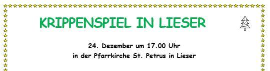 Wir freuen uns auf Sie! Besuchen Sie unser Krippenspiel in Lieser.