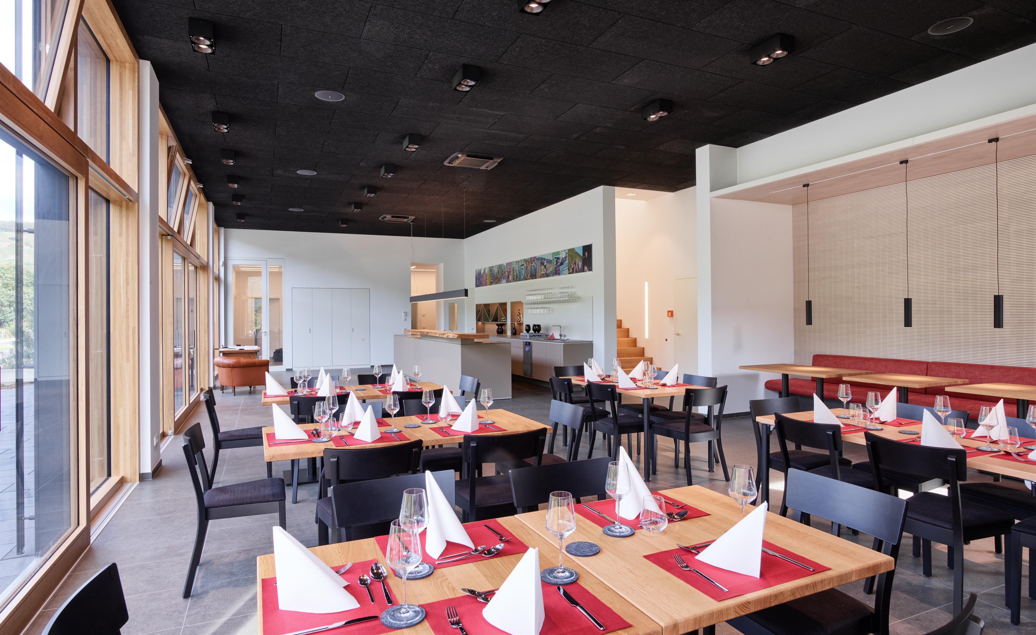 Gebaut unter Verwendung hochwertiger, umweltfreundlicher Materialien in Holzbauweise nach Maßgabe der Nachhaltigkeit, lädt sie ein zu Veranstaltungen rund umden Wein. Die Vielfalt exzellenter Weine wird angemessen präsentiert inden ästhetisch schönen und funktionalen Räumlichkeiten.