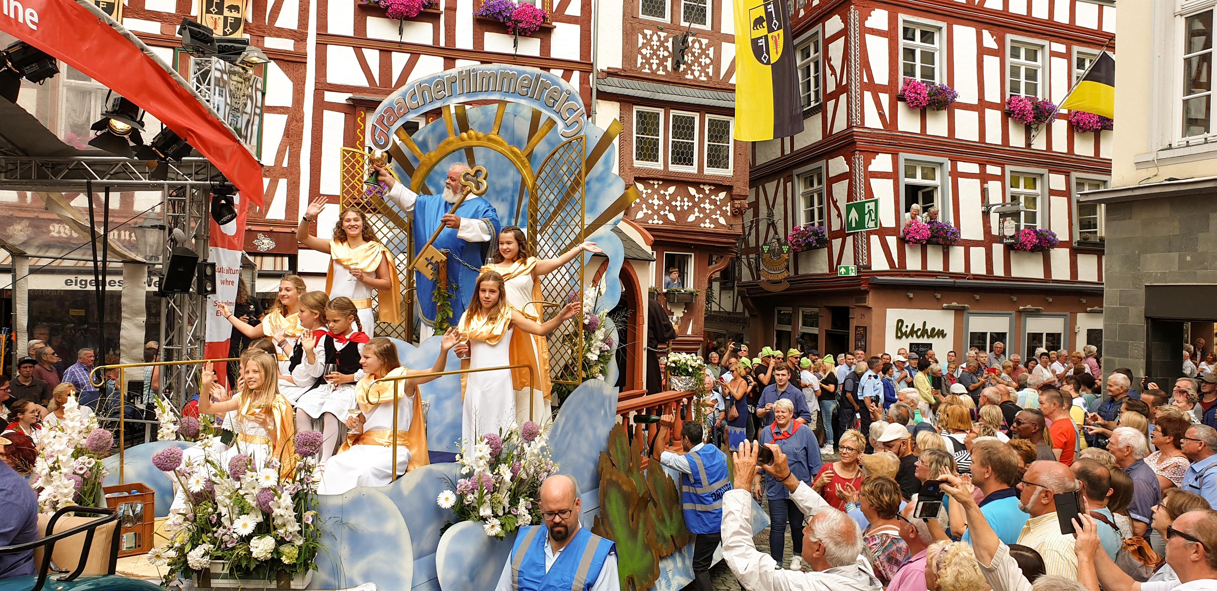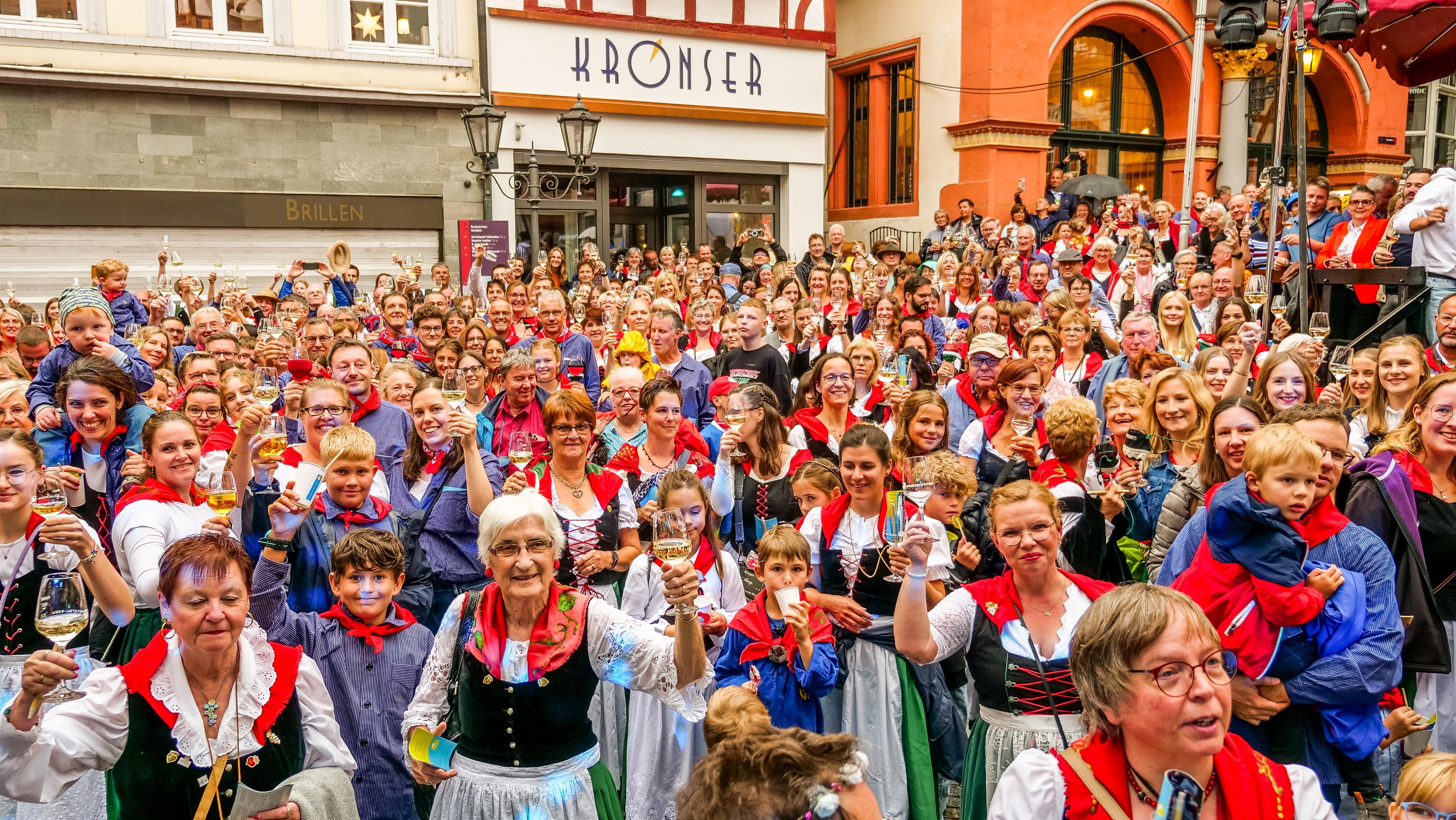 Das Weinfest der Mittelmosel in Bernkastel-Kues zählt zu den populärsten Veranstaltungen an der Mosel. An fünf Tagen im Herbst - Stichtag ist immer der erste Sonntag im September - zieht es unzählige Menschen in seinen Bann. Zu den Attraktionen zählen das prächtige Feuerwerk (samstags), der große Festumzug (sonntags), der traditionelle Moselblümchen-Abend (donnerstags) und die einmalige Weinstraße, auf der zahlreiche Winzer, Weingüter und Gemeinden an allen Tagen ihren Wein anbieten. Dazu spielt auch die Musik: an fünf Tagen, auf drei Hauptbühnen und 5 Musikplätzen. Bemerkenswert ist auch der gleichzeitig stattfindende Vergnügungspark am Kueser Moselufer.