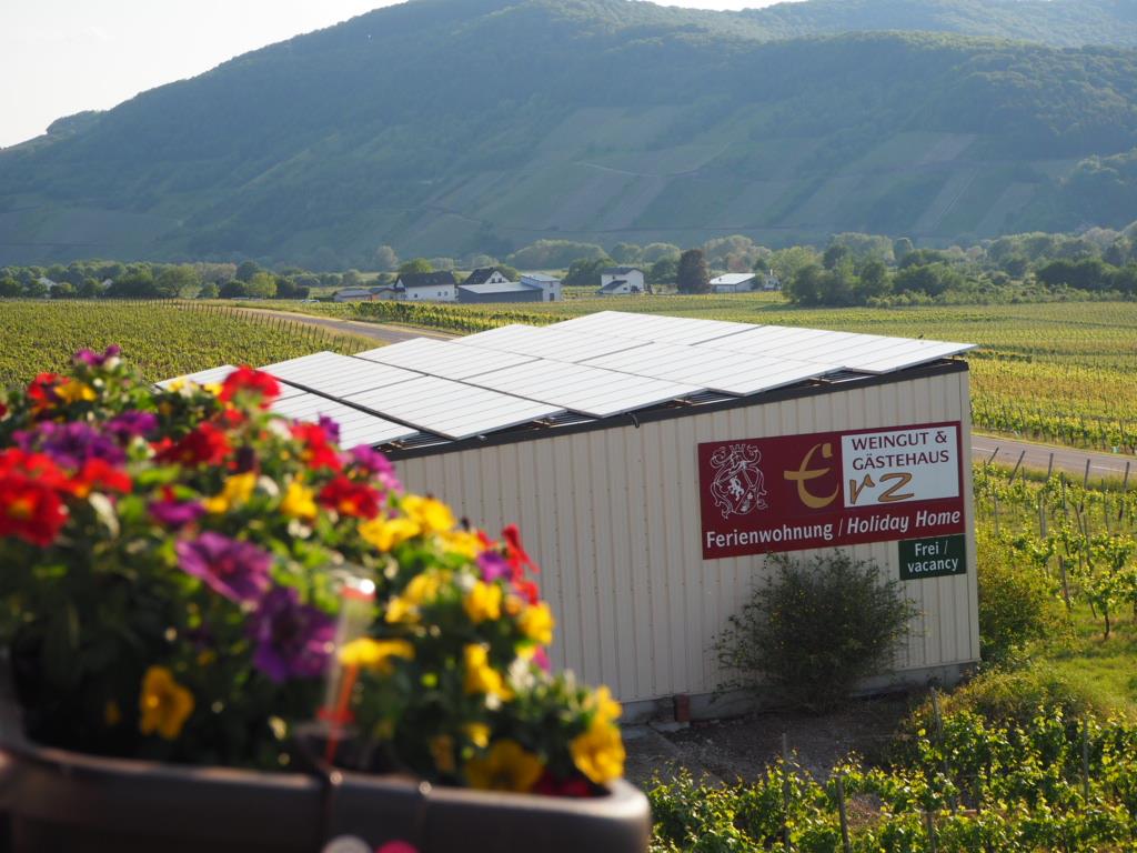 Die wohnlich gestalteten Appartements des Weingutes und die großzügige Sonnenterrasse mit Panoramablick laden zum Wohlfühlen ein. In entspannter Atmosphäre verkosten die Gäste hier gerne den einzigartigen Wein und genießen den Blick auf die Mosel. Neben den Appartements bieten auch die in Parterre liegenden Ferienwohnungen mit Balkon einen einmaligen Ausblick über das üppige Umland.