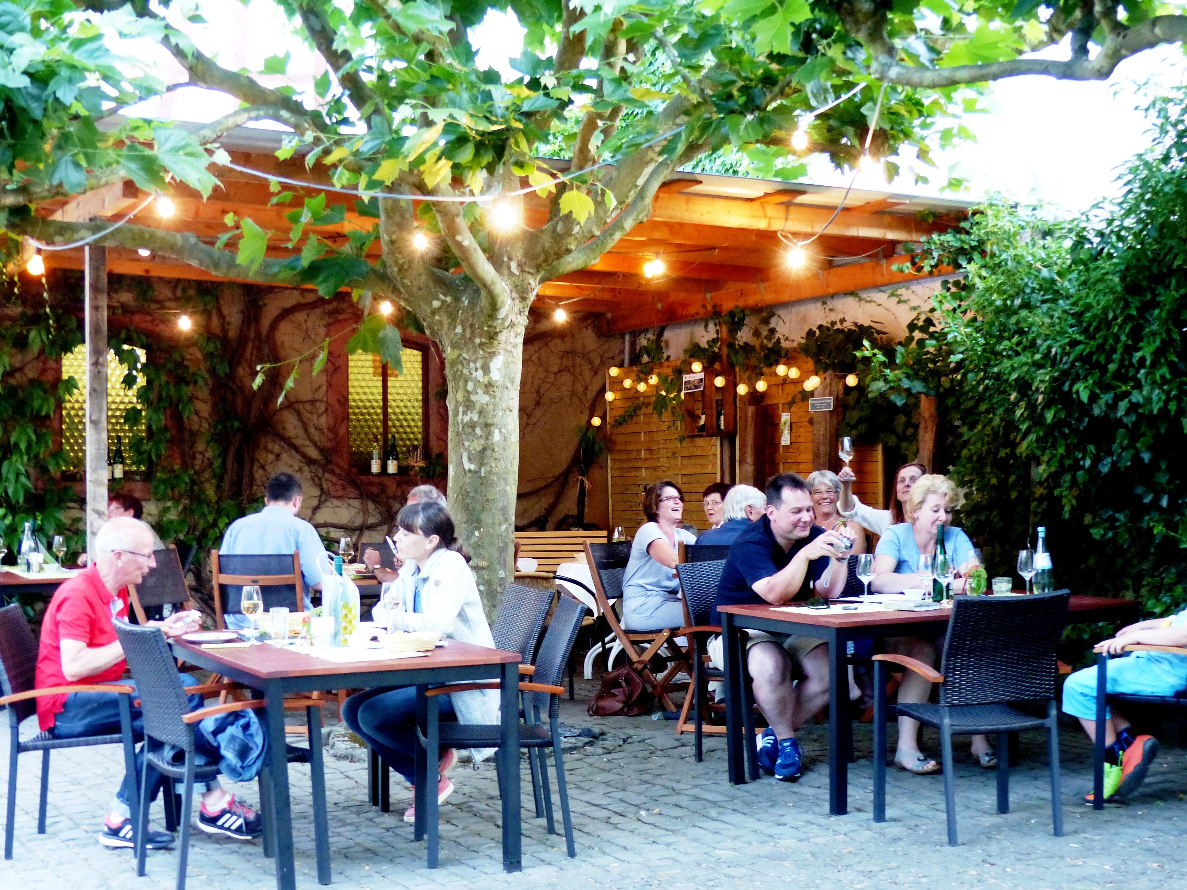 Ein gemütliches Plätzchen zum Verweilen, finden Sie in unserer „Weinlaube unter den Platanen“ direkt an der Nussbaumallee.