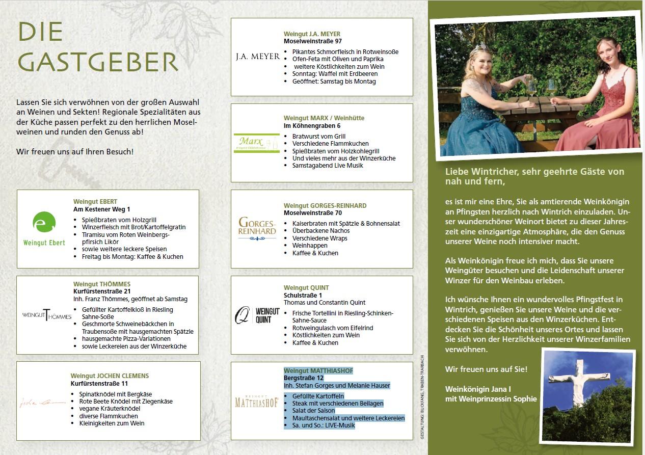 Lassen Sie sich verwöhnen von der großen Auswahl an Weinen und Sekten! Regionale Spezialitäten aus der Küche passen perfekt zu den herrlichen Moselweinen und runden den Genuss ab!