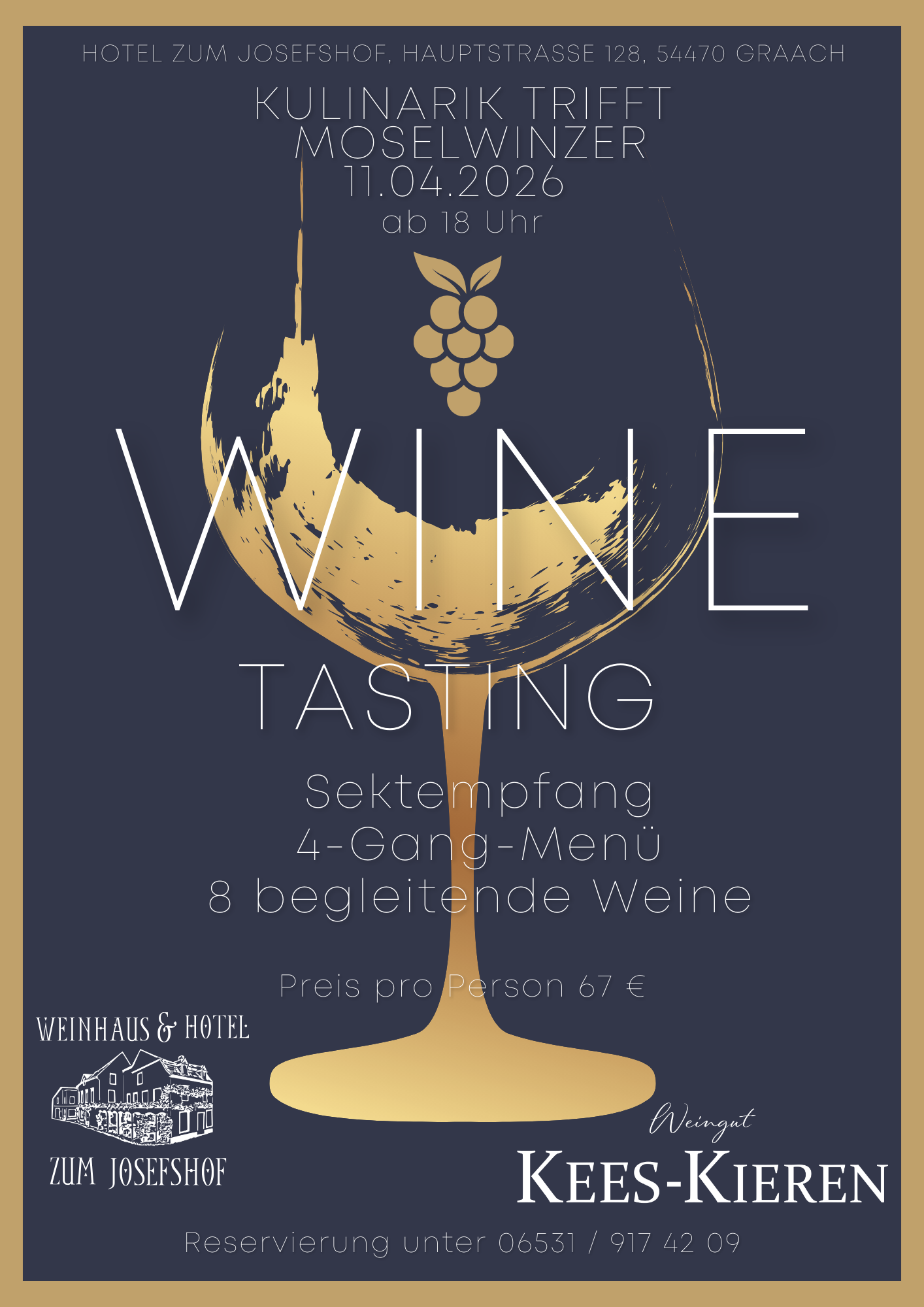 Wenn kulinarische Raffinesse auf große Moselweine trifft, entsteht ein genussvoller Abend für alle Sinne. Unter dem Titel „Kulinarik trifft Moselwinzer“ laden das Weinhaus & Hotel Zum Josefshof und das Weingut Kees-Kieren zu einer besonderen Genussveranstaltung ein.