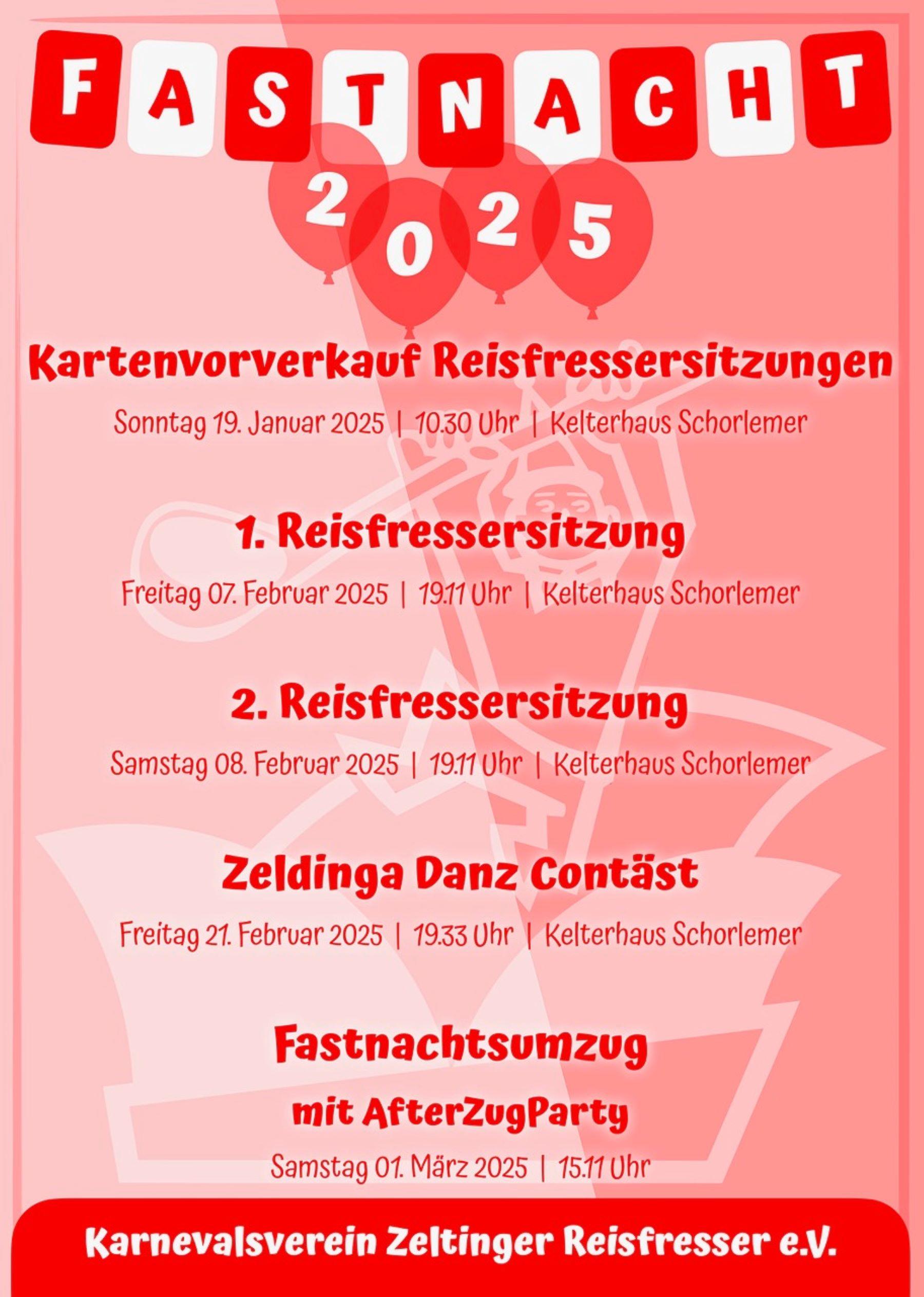 Alle Närrinnen und Narren können am 18.02. um 15:11 den Fastnachtumzug in Zeltingen feiern.